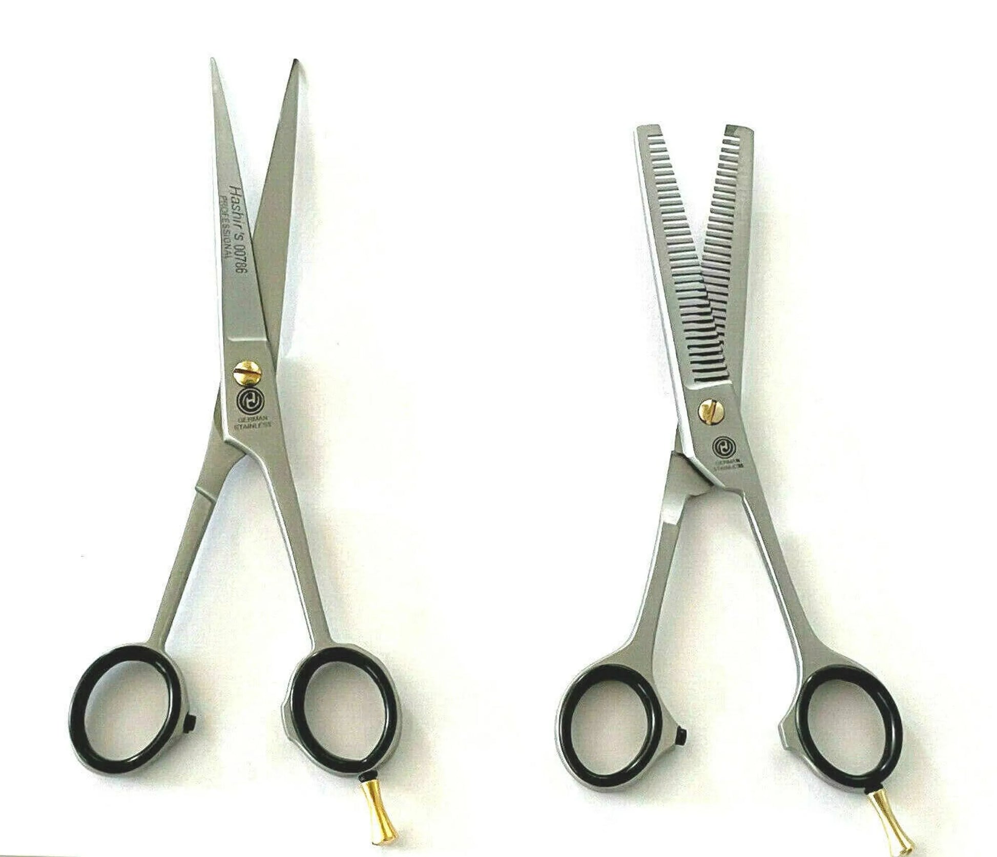 German Curved Barber Hair Trimming Scissors + Double Teeth Thinning Shears Hashir's